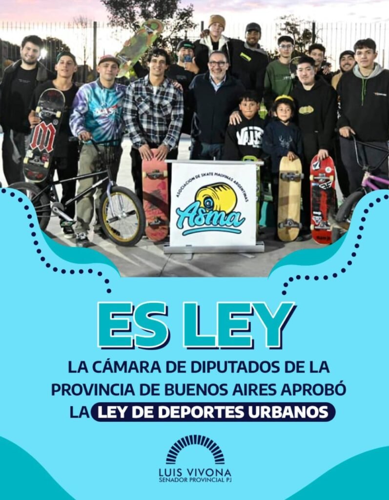 «Con esta Ley de Deporte Urbano damos un paso más hacia una Provincia que reconoce, acompaña y protege estas prácticas que pasaron de ser considerados actividades de ocio a constituir un campo fundamental para miles de bonaerenses, con creciente participación juvenil y presencia en los Juegos Olímpicos, como el BMX, el skate o la escalada deportiva” decía Luis Vivona tras la sanción de su iniciativa legislativa.