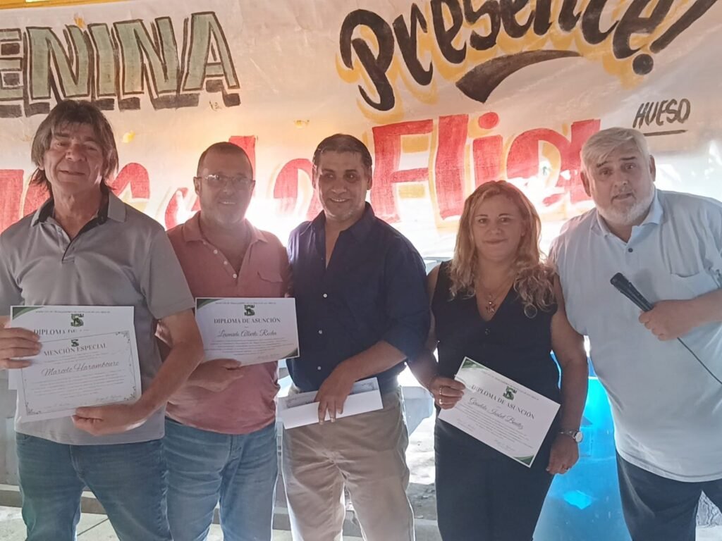 Destacado trabajo de quienes acompañan a Iglesias en la conducción del sindicato: Luis Merlino, Leonardo Rocha, Cecilia Martínez, Griselda Benítez, Sergio Paiz; Carlos Paz, Daniel Vargas junto a Sandra a cargo de la sec. de Género y Sofía, Agrupación 8 de Marzo. También hubo reconocimiento para la labor desarrollada por los trabajadores y las trabajadoras del municipio de San Miguel