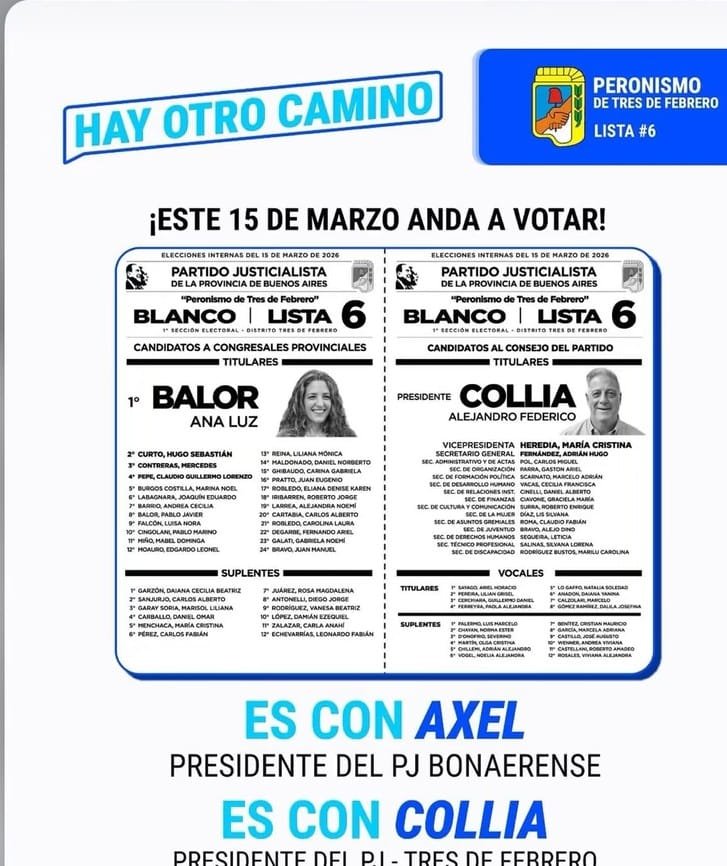 El sec. Gral. de la CGT (triunvirato) y sec. Gral. del Sindicato de Camioneros San Martín-Tres de Febrero, Octavio Argüello, junto al sec. Gral. del Sindicato de Alimentación (STIA) con quien conducen en triunvirato la CGT San Martín, Sergio Escalante y el Delegado Regional San Martín del Sindicato de Estaciones de Servicio y Lavaderos de Autos (SOESGYPE), Christian Prieto; acompañando a Alejandro Collia como candidato a presidente del PJ de Tres de Febrero en las elecciones del partido a realizarse el próximo domingo 15 de marzo.