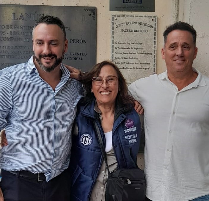 El sec. Gral., Leo Fernández, convocó al equipo que lidera a nivel nacional con representantes en las distintas sedes del gremio, para conmemorar un día histórico para el peronismo reivindicando al movimiento obrero como pilar del legado de Perón y Evita. Junto al conductor, estuvieron Elvira López, sec. Adm. a nivel nacional y referente a cargo de SOEME San Miguel y el sec. Gral. de la sede bonaerense, Rogelio Amondarain.